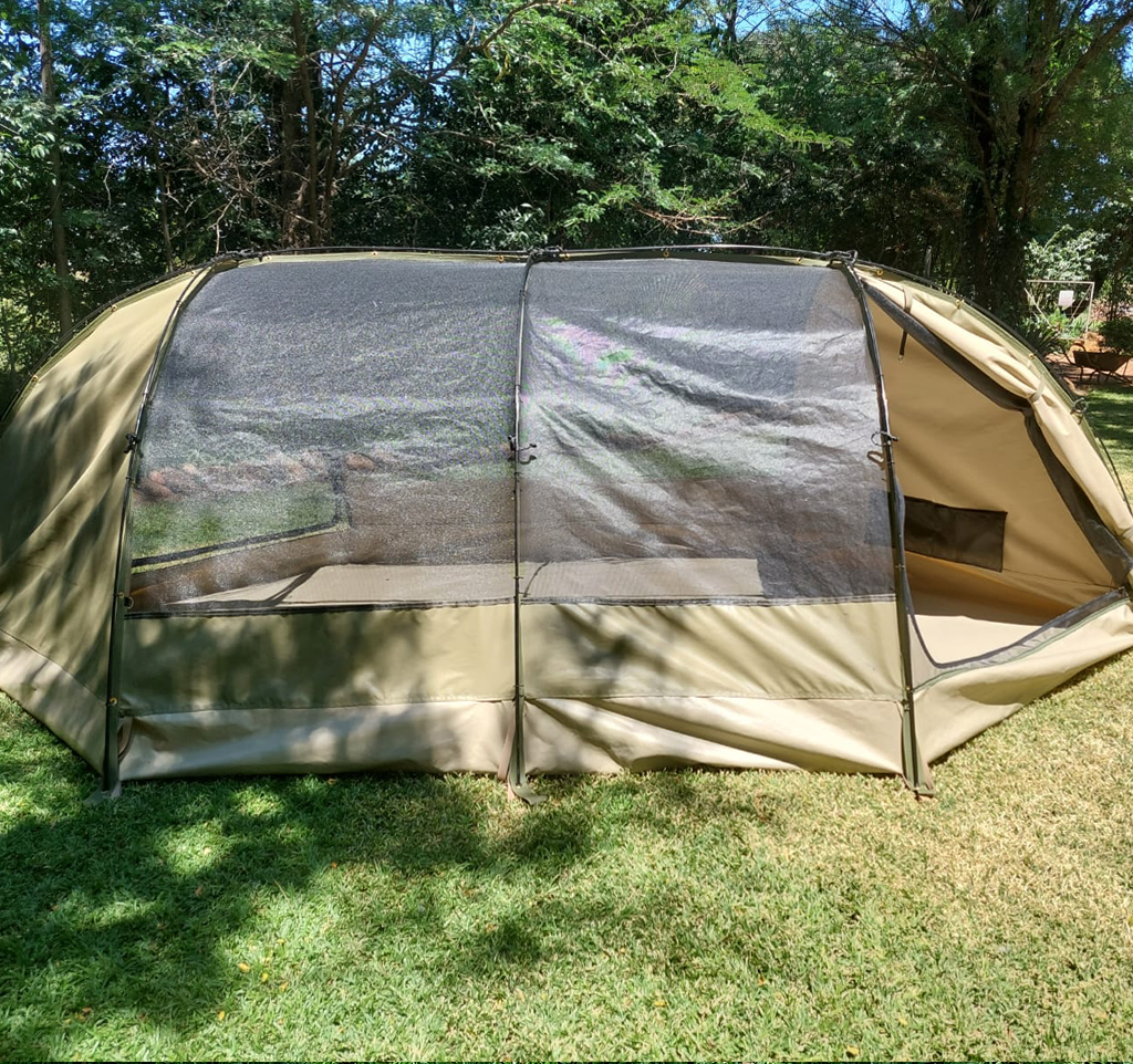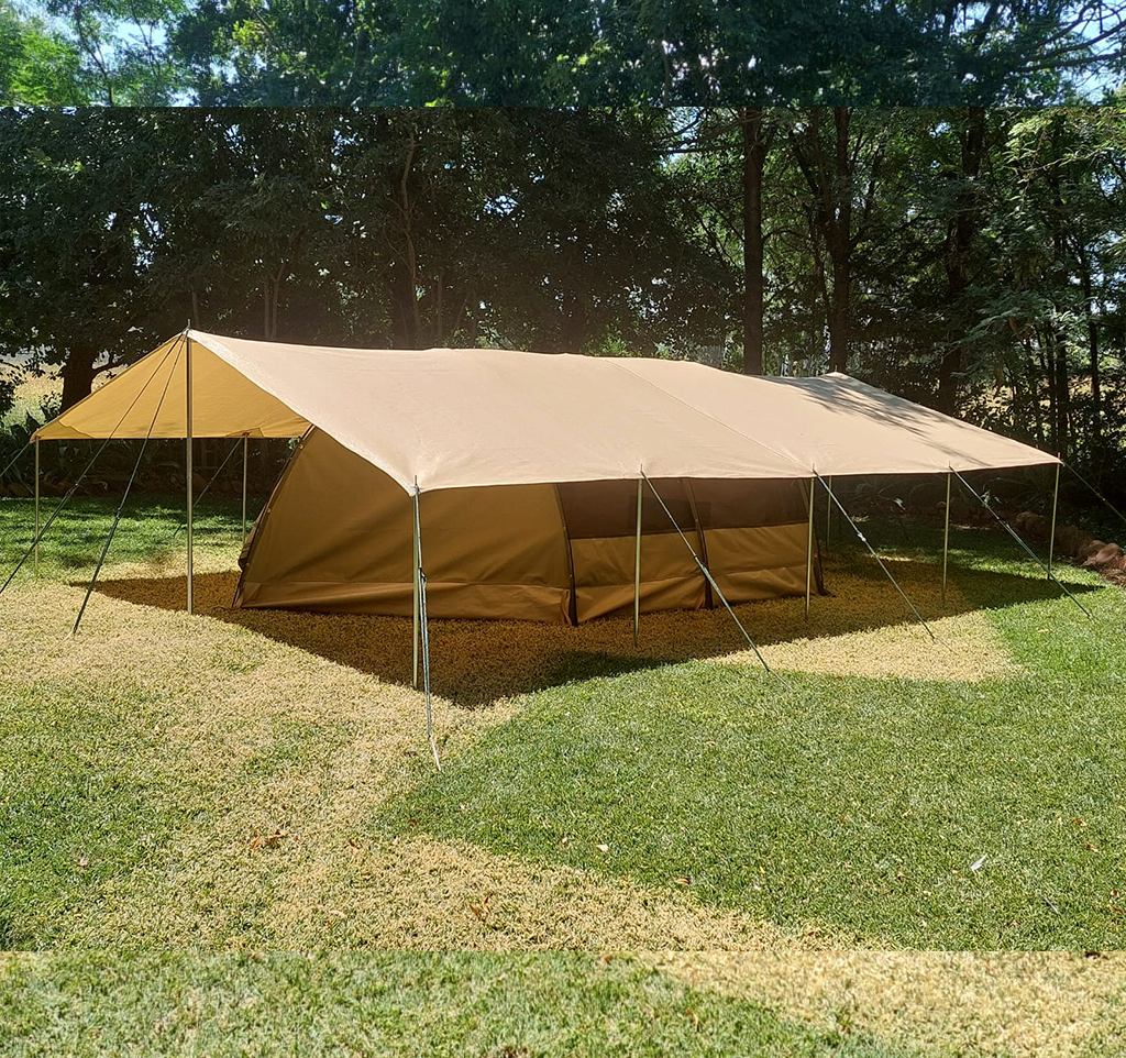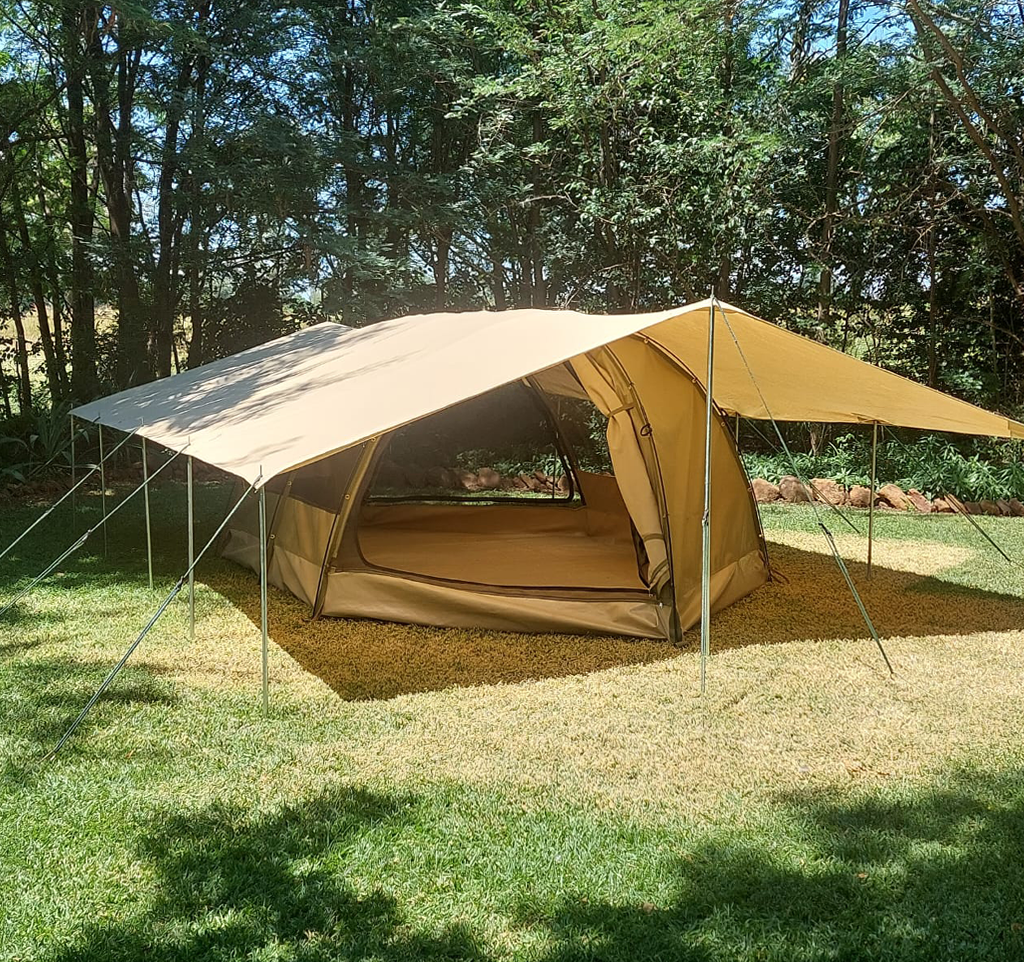 Made from weather-resistant materials, it keeps you dry and comfortable during extended stays outdoors. Part of a modular system, this tent offers optional extensions such as inner walls and extension tarps, allowing you to customize your space according to your needs.